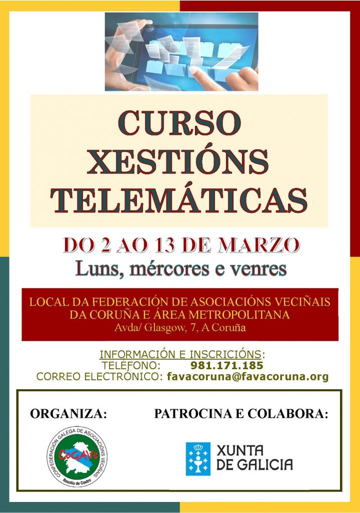 CURSO DE XESTIÓNS TELEMÁTICAS by Cogave Cogave | Feb 19, 2020 | CURSOS | 0 comments Submit a Comment Cancelar la respuestaTu dirección de correo electrónico no será publicada. Los campos obligatorios están marcados con *Comentario Nombre * Correo electrónico * Web Guarda mi nombre, correo electrónico y web en este navegador para la próxima vez que comente.