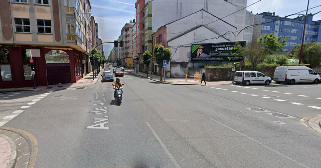 Ademais, os pasos de peóns máis próximos atópanse moi afastados deste cruzamento, o que obriga aos peóns a camiñar longas distancias para cruzar de forma segura. A zona, tamén moi concurrida por vehículos que se dirixen cara á Praza Agro do Rolo, ao centro da cidade ou á saída cara á Avenida da Coruña, presenta un grave risco para a seguridade viaria e peonil.